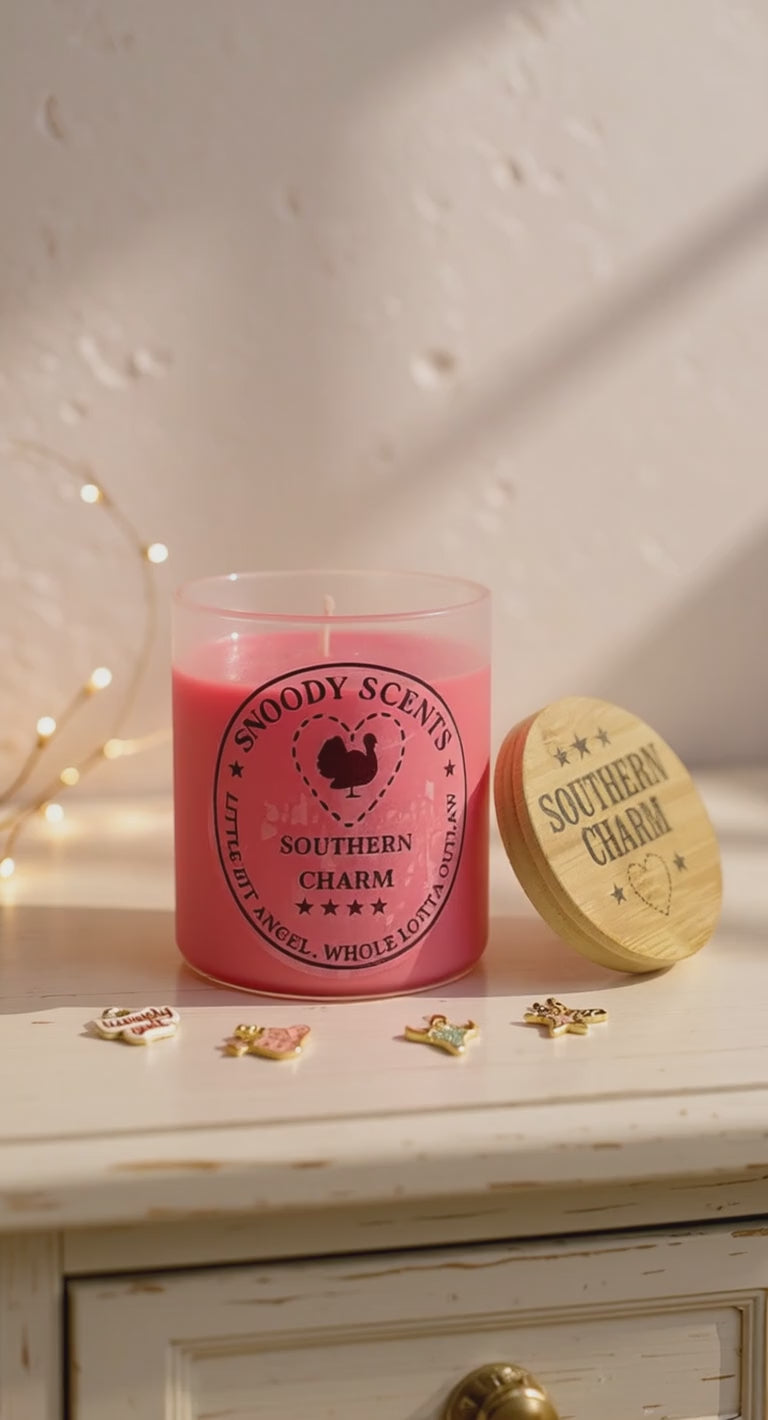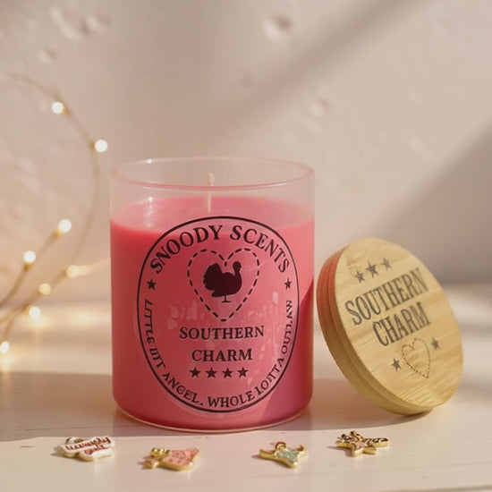 Discover the magic of our Southern Charm jewelry candle — a luxurious hand-poured soy candle with a hidden treasure inside! This unique surprise candle features our signature "Southern Charm Rouge" scent, a captivating blend of sweet cotton candy, warm amber, and rich cedar that's perfect for country farmhouse decor or as a special gift for her. Each 8oz custom candle by Snoody Scents reveals a beautiful piece of jewelry as it burns, making every moment feel like unwrapping a present. Light it up and let the southern charm fill your home!